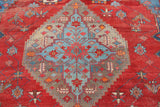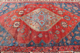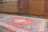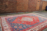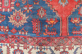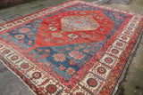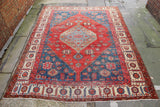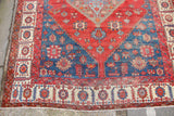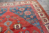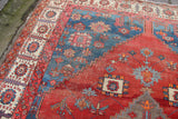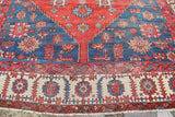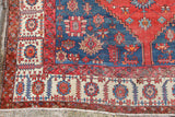 Low pile with foundation visible in areas, this handsome antique has the patina of ages. Beautiful light blue corners and a very strong, handsome ivory border and no navy blue makes for a great decorative 'look'.