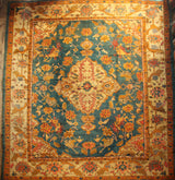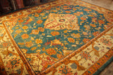 Antique Oushak Carpet, Blue with Medallion 349 x 392cm / 11'5" x 12'10"