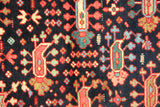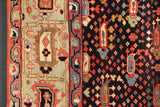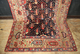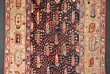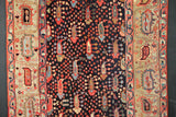 A stunning carpet, in stunning condition. Because of the great pile height, the colours really glow and it feels marvellous underfoot. The field design of flower sprouting 'Boteh' on the navy field is tremendously energetic and keeps the eye moving, while that gorgeous greeny-gold border is as unusual as it is beautiful. I don't find them in this size very often, nor with this great age and great condition. Really fabulous!
