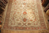 Wonderful, soft, unfaded dyes, chosen by the clever people at Ziegler's workshops to appeal to decorative tastes in Europe and America around 1900. Often retailed through well known departments stores such as Libertys or Harvey Nichols, these beautiful carpets are still so relevant over 100 years later, a real testament to their vision. The allover design, flows comfortably through the field and the soft, milky white ground with accents of pale blue, sun bleached terracotta and pale gold are a decorators dream. Showing light wear and some professional restoration, it is clean and ready for your floor.