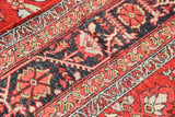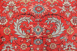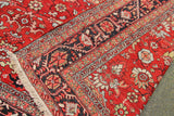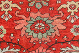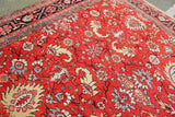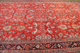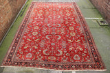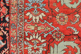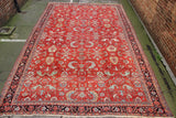 This lovely antique Heriz has the drawing and design of a Ziegler Mahal but from the weave you can see it is definitely of the former. The rich ground colour of beautifully abrashed red will bring warmth to your space and the beautiful design of flowing leaves, vines and large flowers in pale blue, green and yellow is fantastically easy to decorate with. Mostly in good pile with some slight wear commensurate with the age and minimal repair. This great decorative carpet will slip into your living room or reception and look like it was always there, bringing a timeless elegance and style.