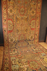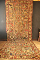 An 18th century gallery sized carpet from the Caucasus region in relatively good condition for the age. The dramatic design of large flowerheads and serrated leaves hark from a period clearly predating most of what we see today. The richness and variety of the dyes is quite something to behold and a rare opportunity to purchase a piece of history.